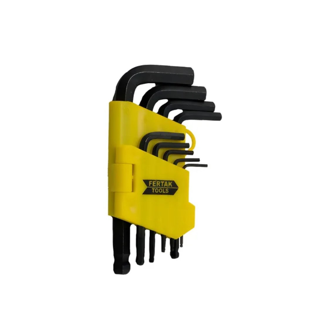 Jogo de Chaves Allen Abauladas 1.5 a 10 mm Curta – 9 Peças Fertak.