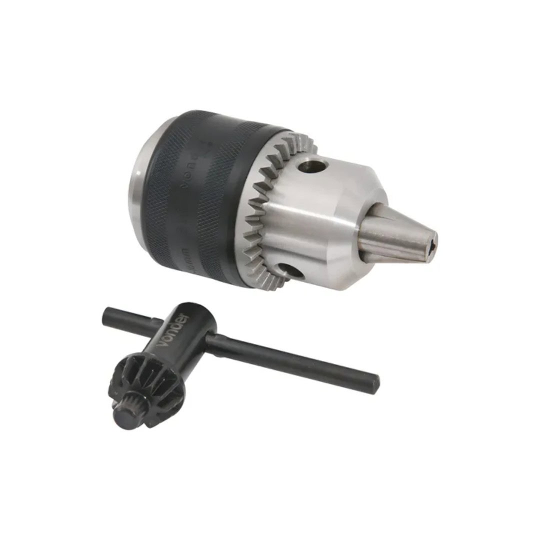 Mandril cônico indicado para tornos, furadeiras de coluna e equipamentos que utilizam cone padrão B18. Sua construção robusta garante excelente fixação e precisão, permitindo trabalhar com brocas de até 16 mm. Projetado para uso profissional, oferecendo estabilidade e segurança durante operações de perfuração em metal, madeira e outros materiais.