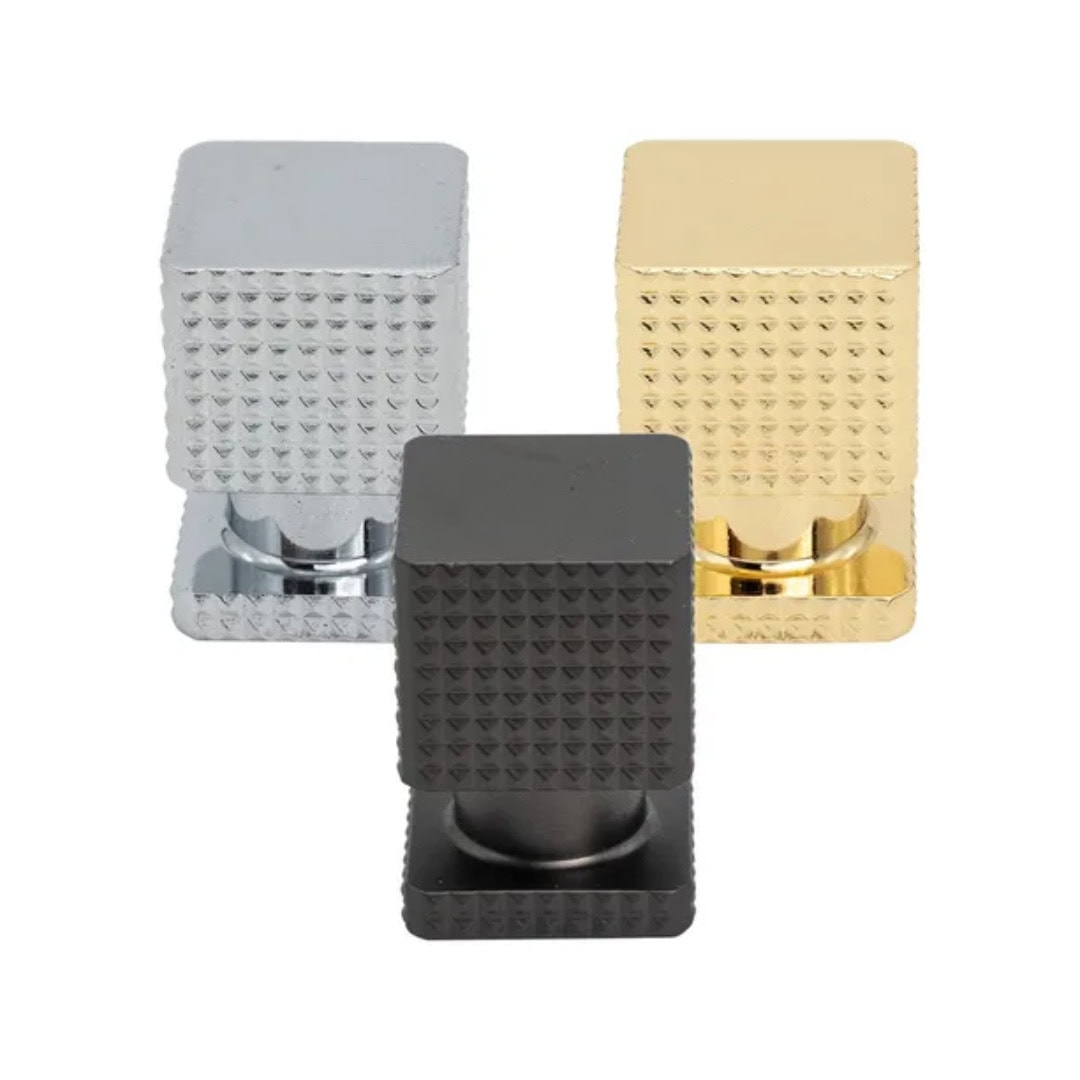 Puxador modelo Mykines unifuro com design moderno e formato quadrado, ideal para gavetas, portas de armários, cômodas e móveis planejados. Seu visual minimalista proporciona acabamento elegante e discreto, valorizando diferentes estilos de ambientes.