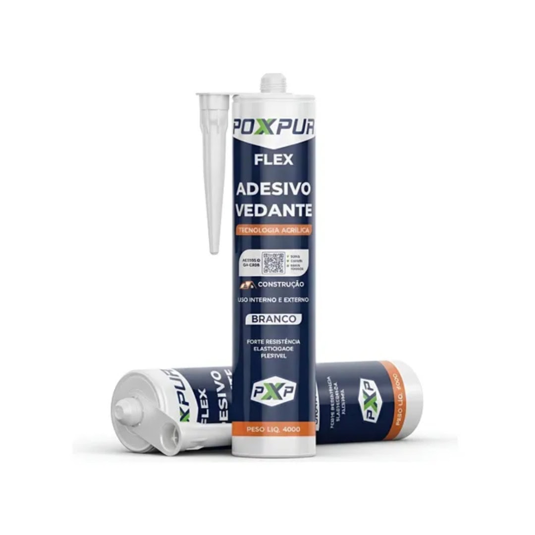 Fixação e vedação com qualidade profissional! O Adesivo Vedante Poxpur Flex foi desenvolvido com tecnologia acrílica à base de água, livre de solventes e com secagem rápida em temperatura ambiente. Após a cura, forma uma camada resistente, elástica e impermeável, garantindo acabamento impecável e duradouro em diversos tipos de aplicação.
